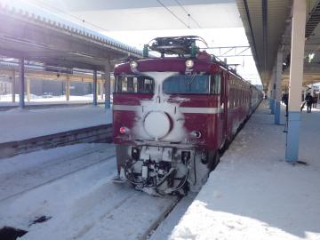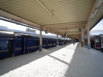 朝起きてみると、そこは一面の銀世界でした。といいますか、かなり吹雪いていました。一晩寝るだけで、こうも違う世界に来られるとは何か不思議な感覚です。これも夜汽車ならではの楽しみです。