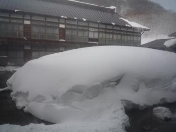 酸ヶ湯は八甲田の山中にある歴史ある温泉で、いかにも温泉場というムードがあります。とても雪深いところなので、部屋の窓から外を見ると、雪が山になっていました。今現在、積雪量が4m以上らしいので、このときよりもさらに雪が積もっていると思われます。