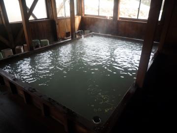 内湯は木造の趣のあるもので、硫黄泉が注がれています。