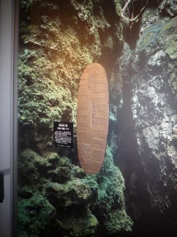 石見銀山へのアクセスは、石見銀山世界遺産センターの駐車場に車を駐めて、シャトルバスで麓の街まで行きます。(紅葉の時期の大雪高原温泉や銀泉台と同じような方式です。)また、石見銀山世界遺産センターでは石見銀山の歴史を詳しく知ることができ、写真のような銀貨のレプリカを見ることもできます。