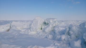 打ち上げられた流氷が山になっています。