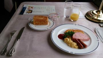 北斗星の食堂車グランシャリオで朝食をいただきました。移り行く車窓を眺めながらの朝食は最高です。