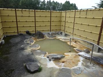 大分空港からレンタカーで九重に向かい、まず訪れたのは壁湯温泉の福元屋です。ここは足元湧出の洞窟風呂が有名で、新鮮なぬる湯を満喫することができました。気持ちよくてしばらく居眠りするほどでした。