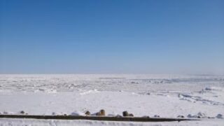今、網走の鱒浦にいます。今年も流氷見物にきました。流氷は期待通りあります。