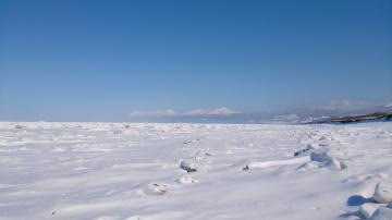 知床連山と流氷のコントラストが素敵です。
