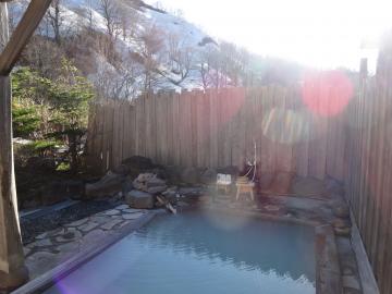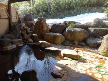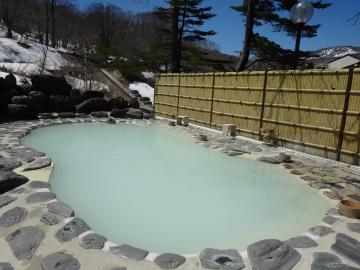 酸性緑礬泉の方は露天風呂となっており、鉄の臭いのする赤みがかった湯を楽しむことができます。